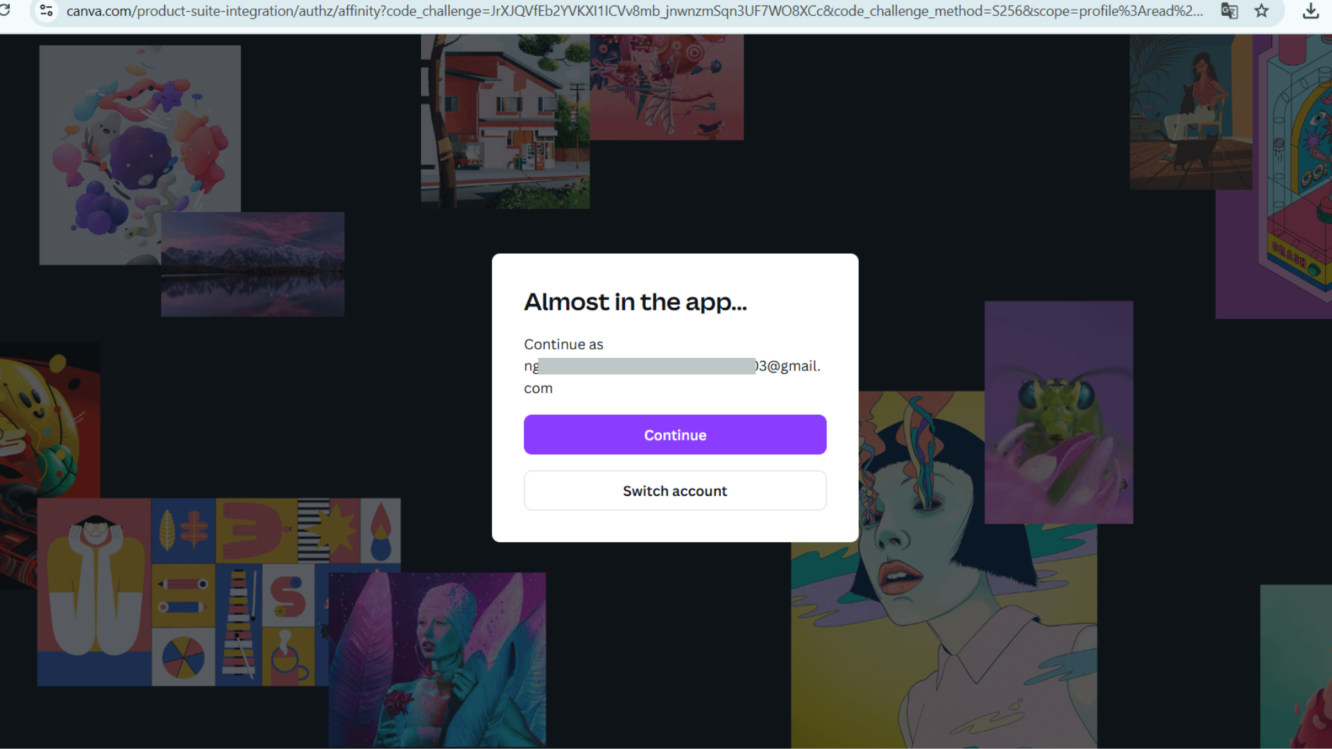 Bước 4: Ở bước xác thực, chọn lại “Đăng nhập bằng Canva”. Hệ thống sẽ chuyển hướng đến trang cho phép bạn ủy quyền Affinity truy cập vào tài khoản Canva.